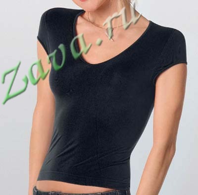 Футболка женская, однотонная из микрофибры с мини рукавом и V-образным вырезом по горловине.