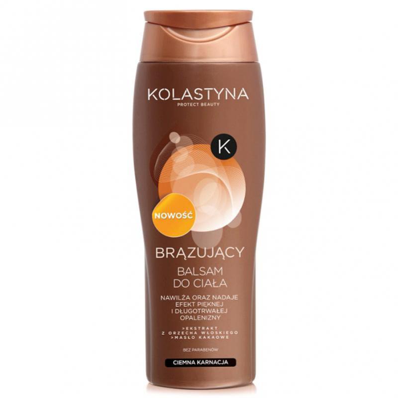 Бальзам для тела с эффектом загара Kolastyna Brazujacy, благодаря нежной текстуре, быстро впитывается и смягчает кожу, делая ее мягкой и шелковистой. Входящее в состав средства масло ши стимулирует синтез естественного, природного коллагена, масло какао разглаживает, питает кожу и препятствует ее преждевременному старению, а экстракт грецкого ореха увлажняет, тонизирует и придает коже легкий оттенок загара.