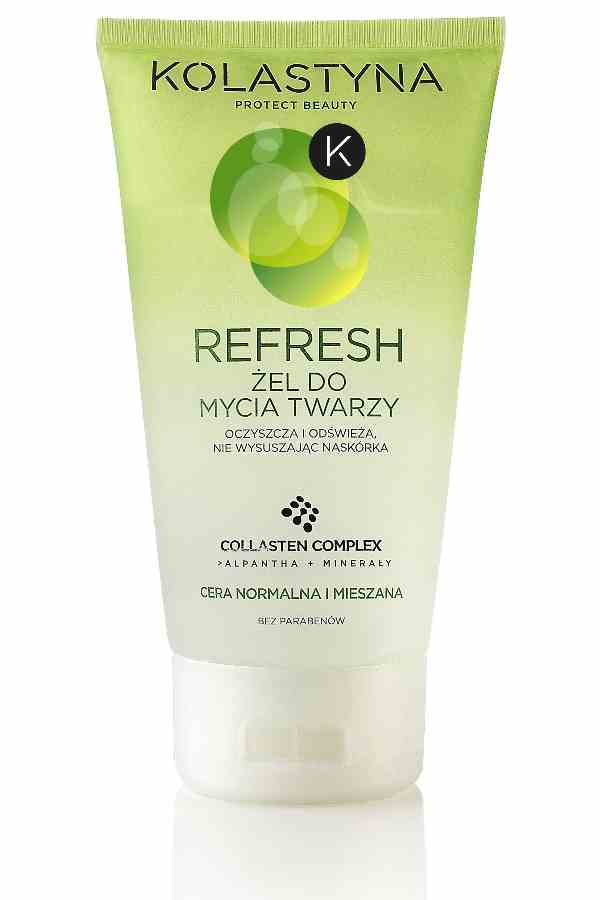 Гель для умывания для нормальной и комбинированной кожи Kolastyna refresh - защита Вашей Красоты. Средство прошло дерматологические испытания. Не содержит парабенов. Очищает и освежает, не сушит кожу. COLLASTEN COMPLEX(R) -уникальный комплекс активных ингредиентов: коллагена, эластина и гликогена в сочетании с минералами (магний, медь, цинк) - улучшает метаболизм и процесс поступления кислорода в клетки кожи. ALPANTHA COMPLEX интенсивно увлажняет, разглаживает и поддерживает процессы восстановления эпидермиса. Действие - очищающий гель идеально удаляет загрязнения и макияж, не пересушивая кожу. Способ применения - наносить на влажную кожу лица, шеи и декольте нежными массирующими движениями, затем тщательно смыть водой.