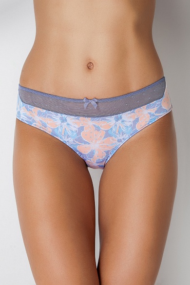 Трусики- слипы из шелковистого микроволокна с нежным цветочным принтом. Декоративная вставка из сеточки по поясу передней части изделия. Эффектный аксессуар.